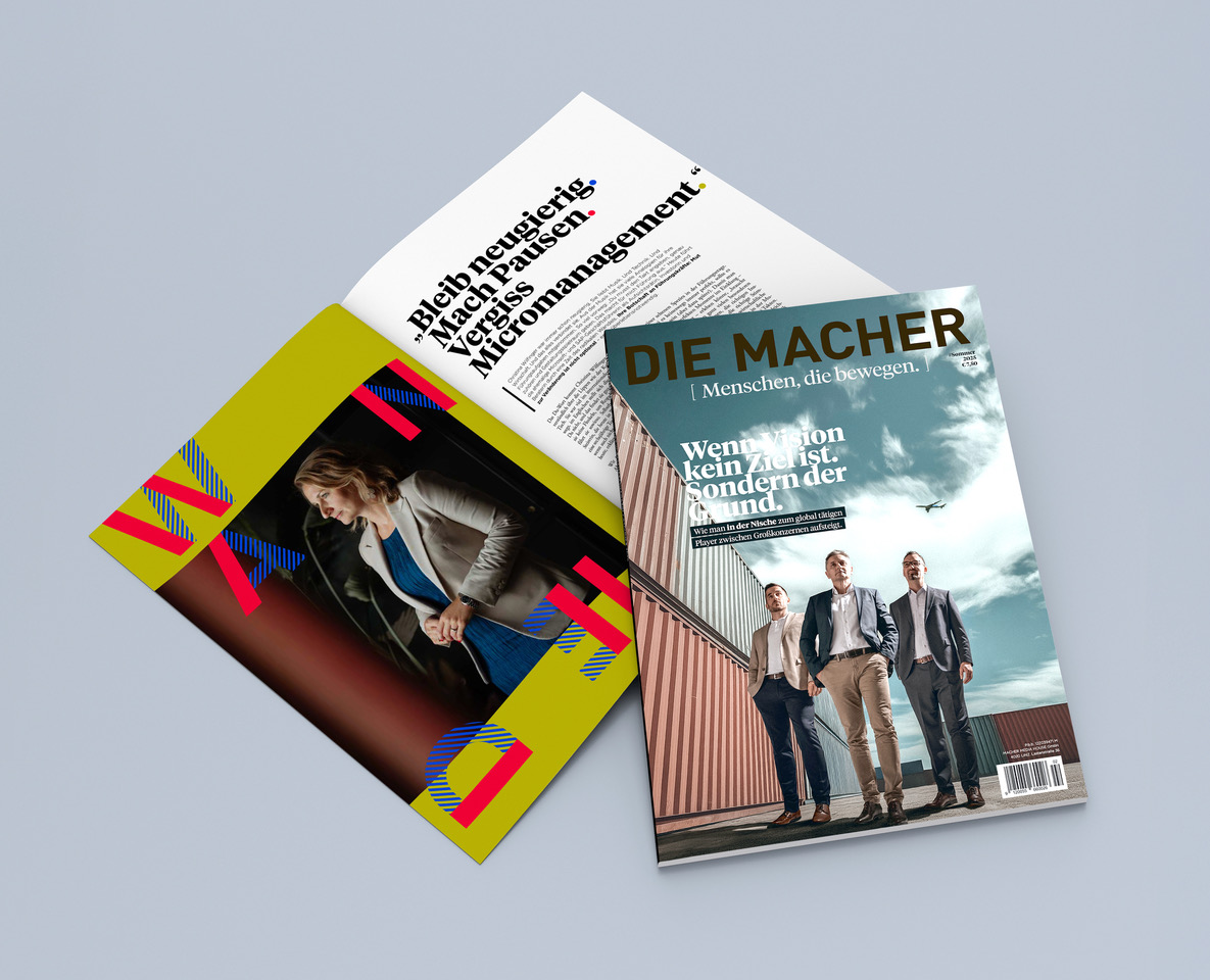Und so ist die Idee von DIE MACHER entstanden – ein Wirtschafts- und Lifestylemagazin. Und vor allem eine Marke, die auf jeder ihrer Plattformen (heute ja auch Podcasts, Social Media und weitere digitale Produkte) inspiriert und Mut macht.